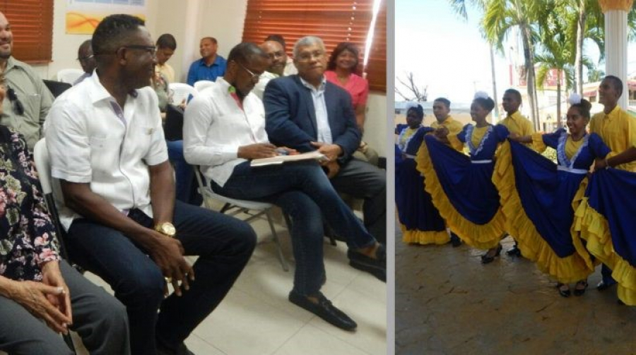 Las palabras de bienvenida estuvo a cargo del Lic. Andrés de las Mercades, Director del Instituto Nacional de Formación y Capacitación Magisterial, Inafocam. quien relato una breve historia de su municipio. Habló de la iglesia colonial, el ingenio fundado en el 1538, la cárcel de Nigua y la casa de veraneo del dictador.