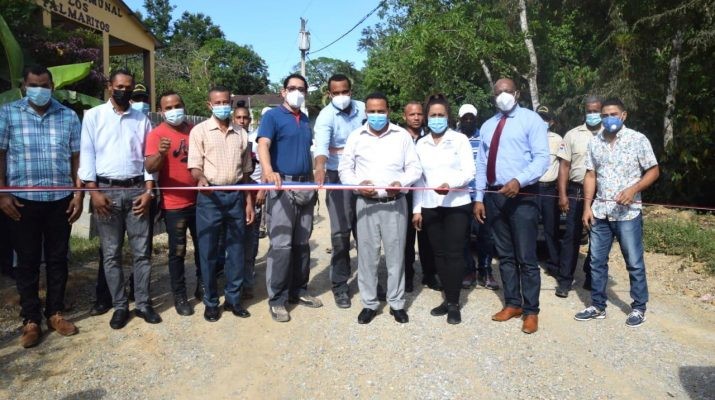 CABALLERO, SÁNCHEZ RAMÍREZ.- Con la algarabía y entusiasmo de los residentes en Los Palmaritos, el Consejo Provincial para la Administración de los Fondos Mineros Sánchez Ramírez (FOMISAR) y la Junta Distrital de Caballero, entregaron a varias comunidades de esta localidad caminos vecinales totalmente rehabilitados con recursos del 5% de la explotación minera.