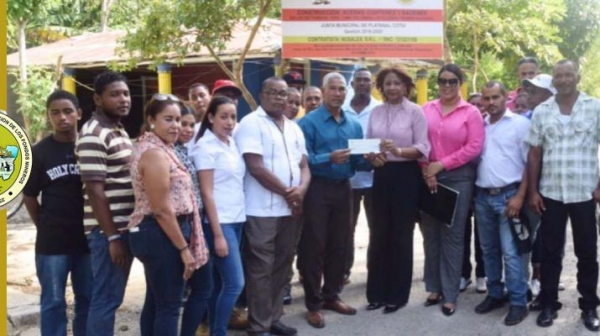 El Dr. Consesar Hernández, presidente del FOMISAR, junto al equipo técnico de esta institución, se apersonó al distrito municipal de Zambrana y entregó al Alcalde Distrital, Octavio Agramonte un cheque por un monto de RD$5,525,580.00 correspondiente al 37% del presupuesto para el acondicionamiento de las calles Tocoa, La Cabirma y La Privada del Maricao; y la imprimación de los caminos vecinales Tojin, Sabana del Rey, Guardianon, Arrollo Vuelta, y el camino Maricao Las Dos Palmas.